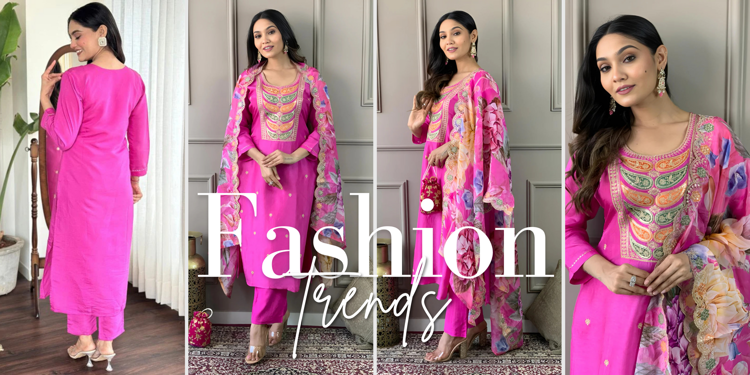 Women's chanderi viscose embroidered straight kurta with pant and dupatta set